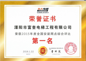 溧陽市富奎電梯工程有限公司 溧陽市富奎電梯工程有限公司是于二OO八年一月九日在原前身溧陽市電梯工程公司基礎(chǔ)上成立的,是專業(yè)從事電梯銷售安裝維修、保養(yǎng)的企業(yè)。是國家質(zhì)監(jiān)總局頒發(fā)的特種設(shè)備安裝、改造、維修A級安裝許可證單位。公司組織機構(gòu)實行總經(jīng)理負責(zé)制,公司下設(shè)管理部、銷售部、安裝維修部、質(zhì)安部、財務(wù)部,公司另外設(shè)十二個分公司:四川分公司、江蘇分公司、上海分公司、浙江分公司、湖南分公司、遼寧分公司、山東分...